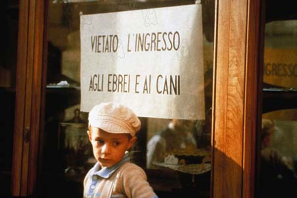 Zaman atlamasıyla filmin ikinci aşamasında filmin başındaki gibi bir sahne bisikletle karşımıza çıkar. Yine kontrolsüz bir bisiklet kullanımıyla aslında hiçbir şeyin yolunda olmadığı gösterilir. Etraflarında da birçok değişiklik vardır. Askeri cipler ve yığınaklar göze çarpmaktadır. Duvar yazıları ve Yahudilerin dükkanlarını işaret eden yazıların çoğu nefret içeriklidir. Teşhir amaçlıdır. Özellikle kullanılan nefret söylemleri arasında filmde “VIETATO L’INGRESSO AGLI EBREI E AI CANI” (köpekler ve